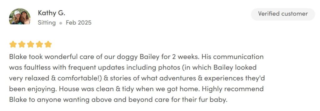 A Meet and Greet is required for new clients to ensure I’m the right fit for your pet’s needs and can provide the best possible care.